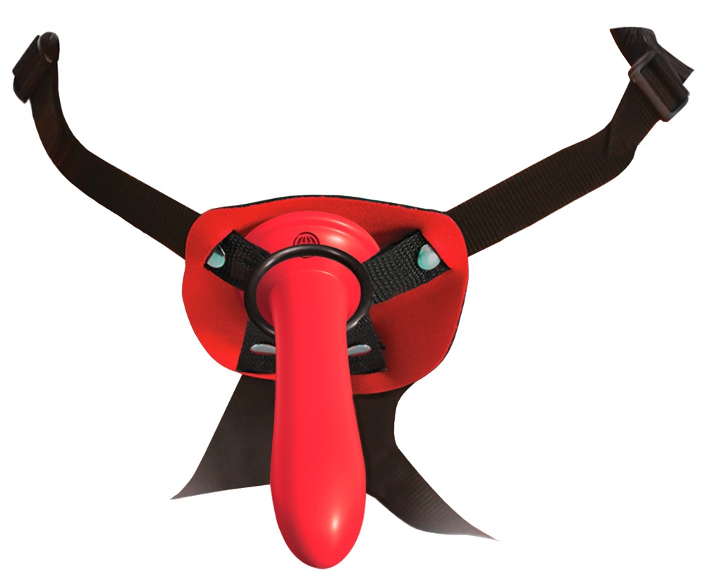 Ремінний страпон нереалістичний з кільцевим кріпленням червоного кольору з чорними трусиками Pipedream Fetish Fantasy