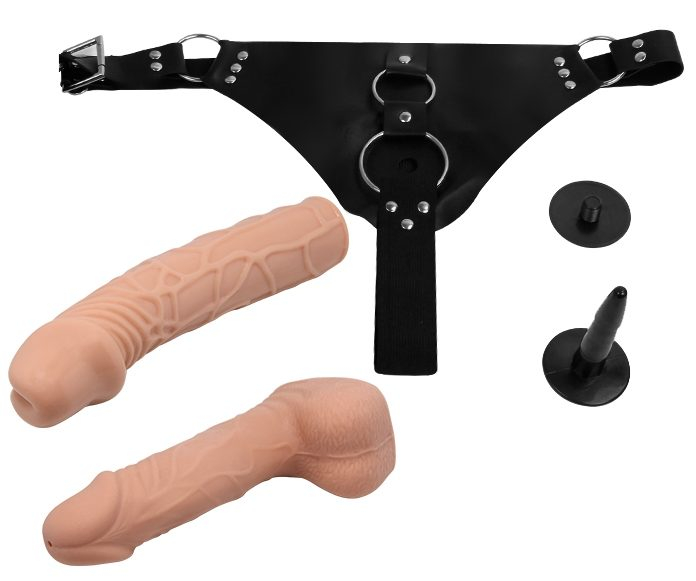 Ремінний страпон реалістичний для жінок 2 насадки тілесного кольору LYBAILE BAILE Jessica Strap On