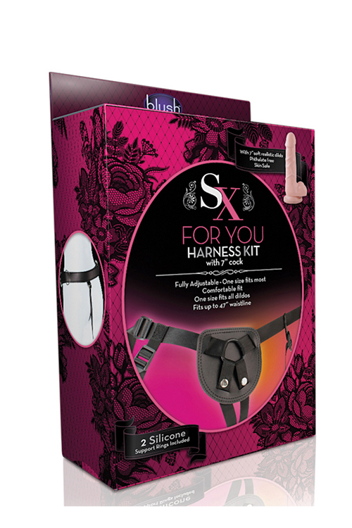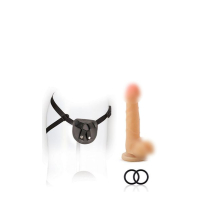 Beginner's harness with 7" cock compatible with all dildo's. The performance pad is constructed from velvetly smooth leather and the adjustable straps are soft nylon for comfortable wear. Durable construction with 2 strong silicone support rings designed for rough play.