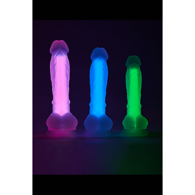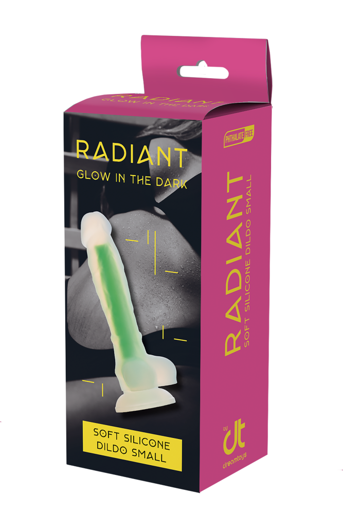 Фалоімітатор від лейбла Dream Toys Radiant, що світиться в темряві, виготовлений з м'якого і напівпрозорого силікону з міцною присоскою для використання без допомоги рук.