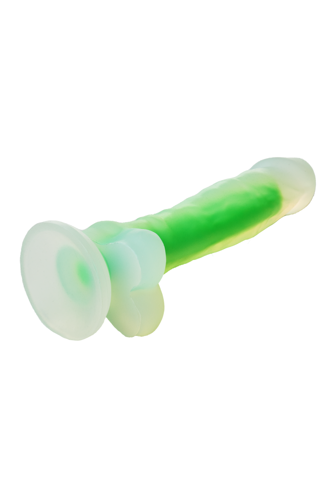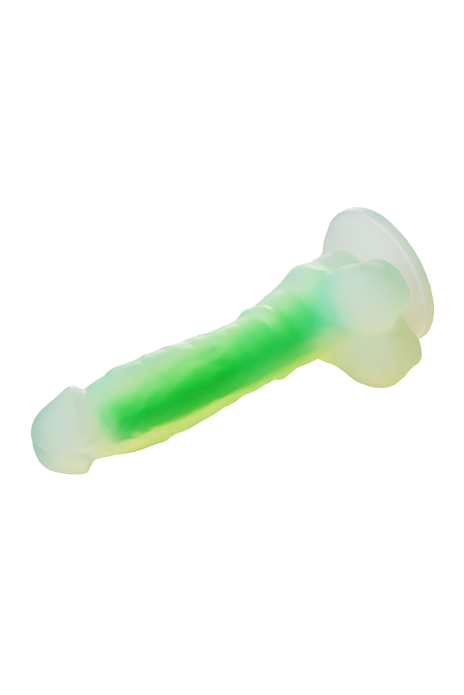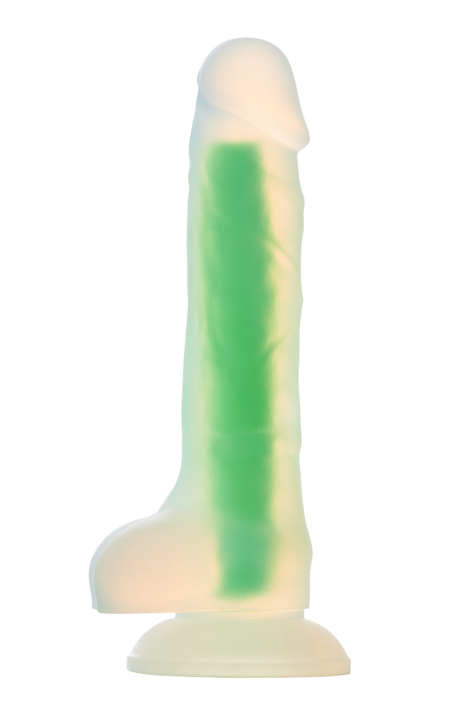 Фалоімітатор що світиться реалістичний на присосці силіконовий зеленого кольору Dream Toys