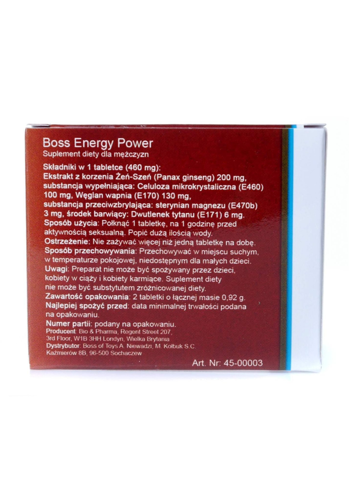 Інгредієнти, що містяться в Boss Power, – це рослинні компоненти, відомі століттями, які підвищують рівень лібідо та відновлюють життєві сили. Boss Power сприяє легшій та швидшій ерекції за короткий час після вживання. Цей ефект зберігається до 4 днів! Він чудово допомагає чоловікам відновити задоволення від статевого акту. Boss Energy дає вам непереборну гарантію подолання страху невдалого статевого акту у будь-якому віці!