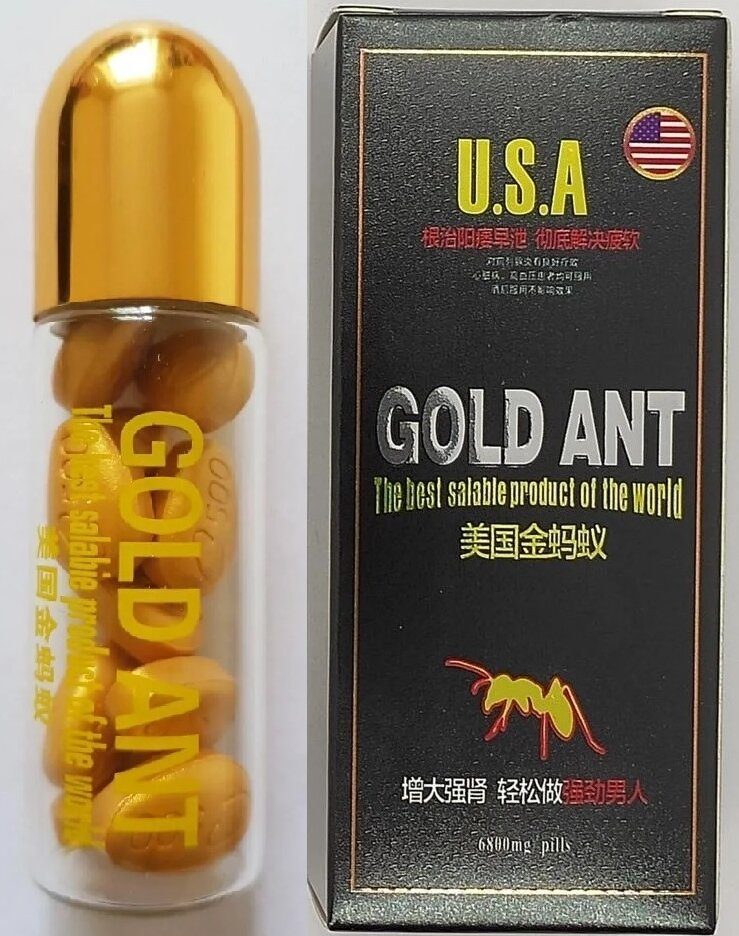 Преапарат для потенції» Золотий мураха " (Gold Ant) мають повністю натуральний склад, один з компонентів препарату є екстракт з Чорного мурашки, природного афродизіака, здавна відомого в китайській медицині.