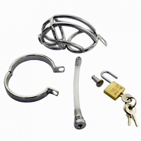 Виготовлений з медичної, що не містить нікелю нержавіючої сталі. Цнотливість з нержавіючої сталі з пробкою для розтягування уретри ZA143. Пристрій включає в себе: довжину клітини близько 3 дюймів, ширину 1,3 дюйма, окружність 4 дюйми, діаметр кільця: 48 мм, мідний замок. . Є гумовий шланг 4 клітини, довжина трубки близько 100мм, діаметр близько: 6мм, також представлений шланг довжиною 150мм. Вага: 150 грам.