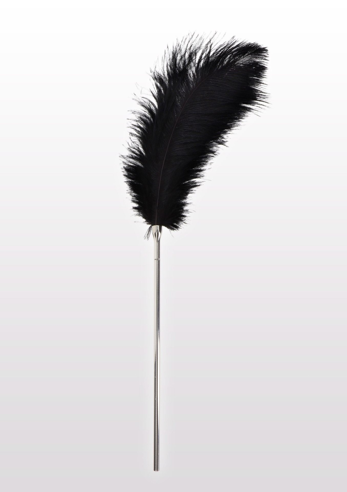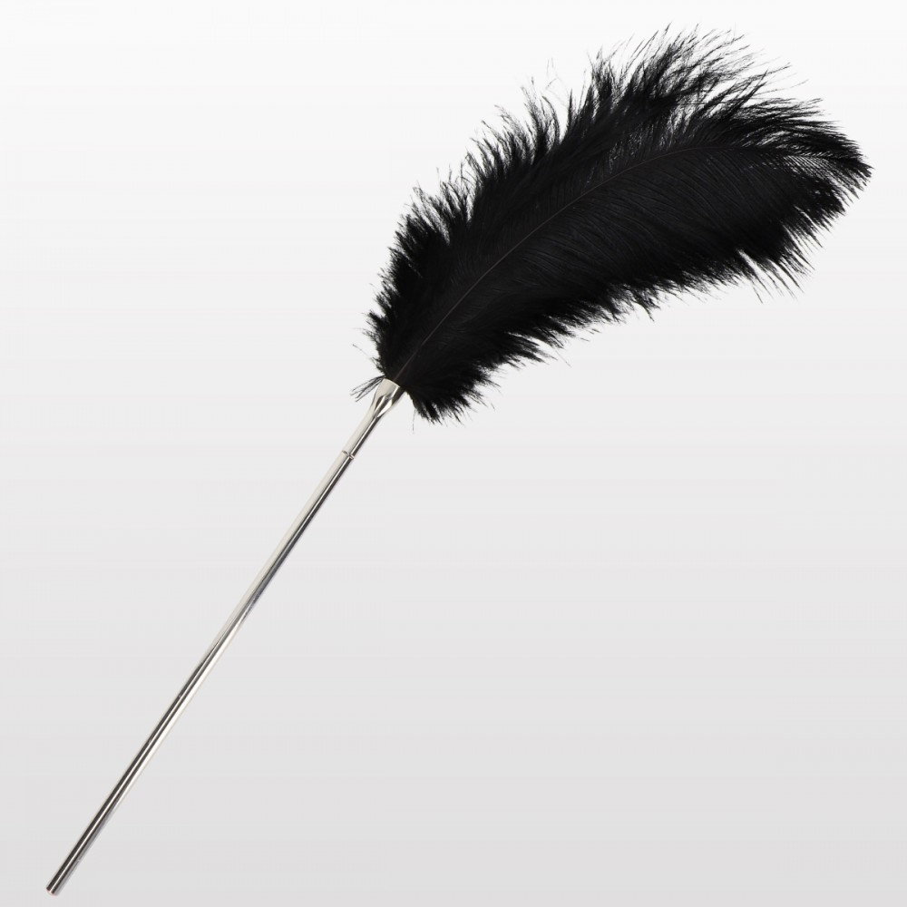 Перо чорне, на довгій сріблястій ручці, чорна, 44 см Спробуйте внести до своєї сексуальної гри щось новеньке! Це чарівне перо на довгій ручці відмінно підійде для того, щоб познайомитися з ванільним БДСМ, дратувати партнера, або урізноманітнити свій інтимний сценарій, починаючи з чогось м'якшого разом із чорним тиклером. Короткий зовнішній вигляд атрибуту, рельєфні візерунки на рукояті, пухнасте чорне перо, все це робить тиклер дуже стильним і по-справжньому розкішним. Задовольніть всі свої еротичні фантазії разом із чарівною БДСМ іграшкою. Доповніть свою інтимну гру маскою із заплющеними очима для того, щоб кожен дотик гармати викликав ще більше яскравих відчуттів! Характеристики: Матеріали - перо індички, метал Довжина – 44 см Колір рукояті – сріблястий Колір пера – чорний