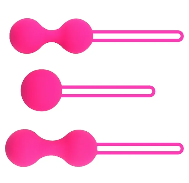 Тренажер Кегеля – набір вагінальних кульок для зміцнення інтимних м'язів (3 шт) Vagina Dumbbell Violet. На відміну від багатьох інших тренажерів Кегеля, набір вагінальних кульок Vagina Dumbbell розроблений у вигляді триступеневої системи з трьох вагінальних кульок різної ваги (56г, 61г, 102г), які допоможуть пройти повний цикл тренувань від початкового рівня до більш просунутого. Вправи з вагінальними кульками відновлюють тонус, зміцнюють та підтягують м'язи тазового дна (інтимні м'язи). Під час тренувань підвищується мікроциркуляція крові в ділянці малого тазу (профілактика застою крові). Вправи Кегеля допомагають впоратися зі стресовим нетриманням сечі, кашлі, чханні або бігу. Тренування допомагають підготуватися до пологів чи відновитися після них. Як результат вправ з кульками Кегеля – підвищується чутливість інтимної зони під час сексу з проникненням, оргазм досягається легше, стає інтенсивнішим. Тренувальні кульки з гантелями ідеально підходять для початківців та досвідчених користувачів. 100% водонепроникність, легко чистити. Всього 15–30 хвилин на день і 30 днів, щоб ви та ваш партнер помітили різницю. - вага - 56 г/61 г/102 г - діаметр - 35 мм/30 мм/28 мм - довжина - 160 мм - колір рожевий