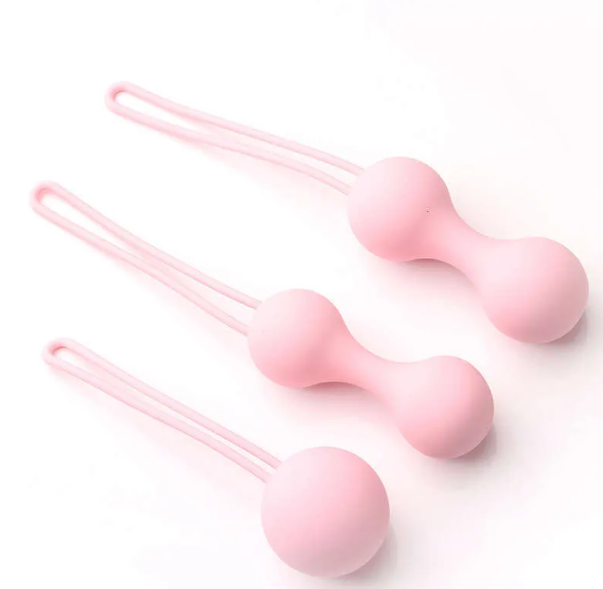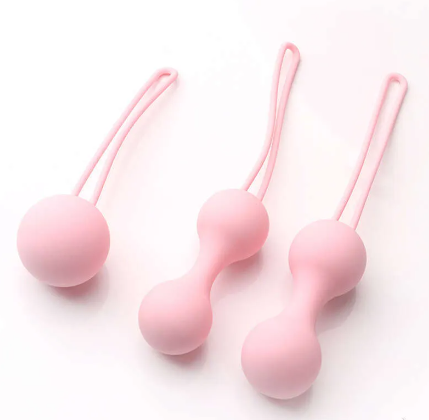 Тренажер Кегеля – набір вагінальних кульок для зміцнення інтимних м'язів (3 шт) Vagina Dumbbell Violet. На відміну від багатьох інших тренажерів Кегеля, набір вагінальних кульок Vagina Dumbbell розроблений у вигляді триступеневої системи з трьох вагінальних кульок різної ваги (56г, 61г, 102г), які допоможуть пройти повний цикл тренувань від початкового рівня до більш просунутого. Вправи з вагінальними кульками відновлюють тонус, зміцнюють та підтягують м'язи тазового дна (інтимні м'язи). Під час тренувань підвищується мікроциркуляція крові в ділянці малого тазу (профілактика застою крові). Вправи Кегеля допомагають впоратися зі стресовим нетриманням сечі, кашлі, чханні або бігу. Тренування допомагають підготуватися до пологів чи відновитися після них. Як результат вправ з кульками Кегеля – підвищується чутливість інтимної зони під час сексу з проникненням, оргазм досягається легше, стає інтенсивнішим. Тренувальні кульки з гантелями ідеально підходять для початківців та досвідчених користувачів. 100% водонепроникність, легко чистити. Всього 15–30 хвилин на день і 30 днів, щоб ви та ваш партнер помітили різницю. - вага - 56 г/61 г/102 г - діаметр - 35 мм/30 мм/28 мм - довжина - 160 мм - колір пудра
