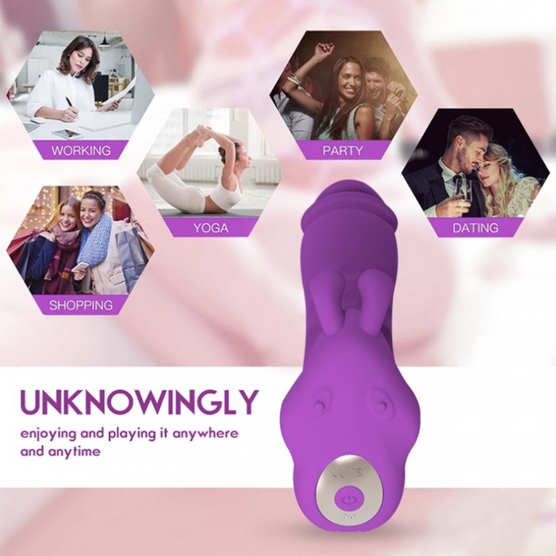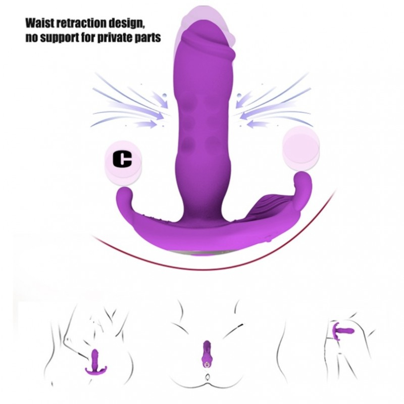 Вібратор вагінальний з відростком для клітора з пультом дистанційного керування для прихованого носіння фіолетового кольору Cnt