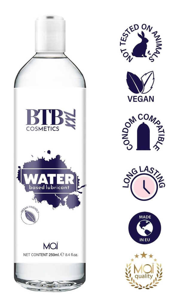 Лубрикант BTB Water based lubricant на водній основі гарантує чудове ковзання та комфорт. Він підходить як для вагінального, так і для анального статевого акту завдяки своїй особливій формулі, яка гарантує тривалий та комфортний ефект. Це мастило також можна використовувати для всіх видів секс-іграшок завдяки його сумісності з матеріалами на силіконовій основі.