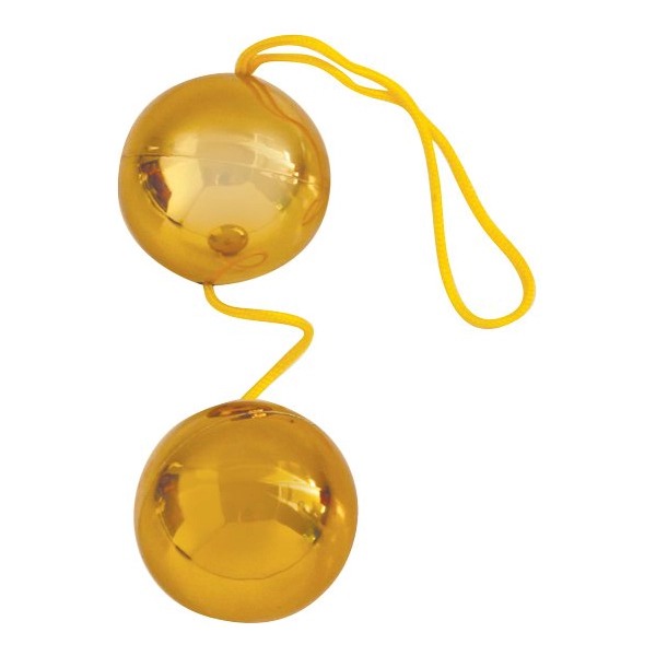 Золотисті вагінальні кульки із якісного пластику. Кульки мають зміщений центр тяжкості і всередині піхви починають вібрувати та стимулюють скорочення м'язів.