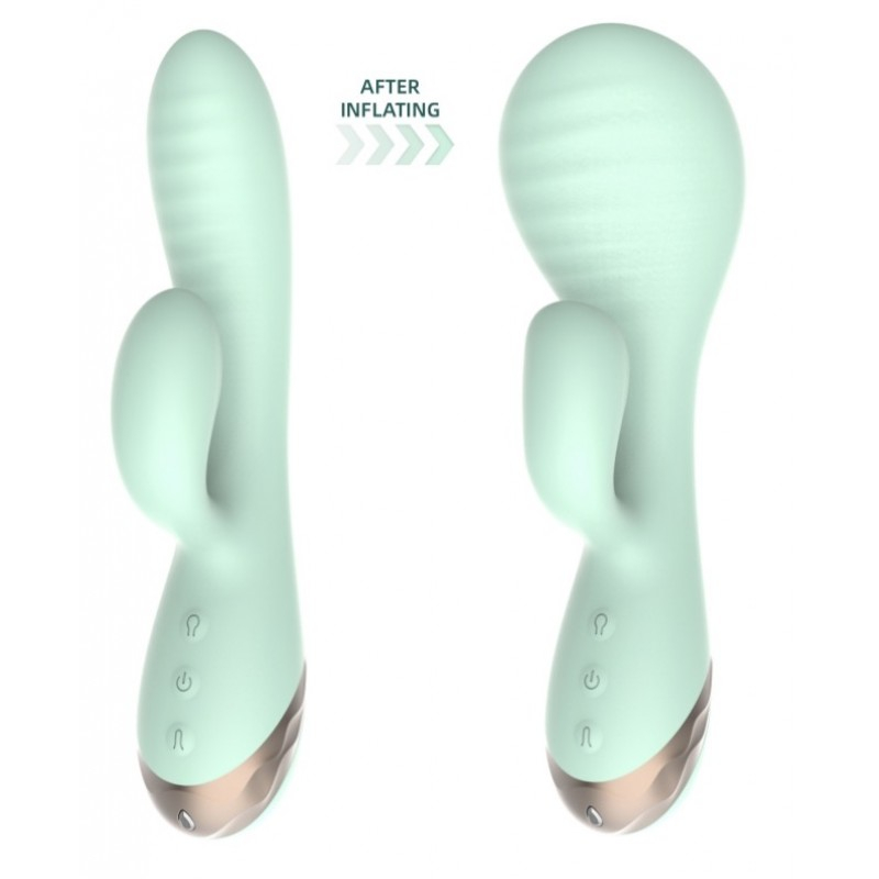 Вагінальний вібратор з розширюваною головкою для точки G Inflatable Dual Pleasure Dildo бірюзовий