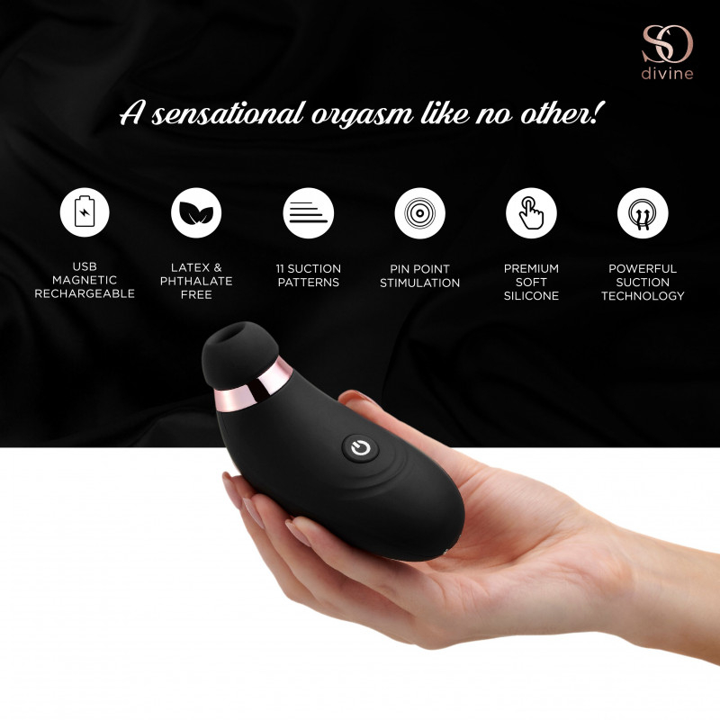 Безконтактний кліторальний стимулятор So Divine оснащений кращою технологією хвильової повітряної стимуляції, яка впливає на саму основну жіночу ерогенну зону без прямого торкання до неї.