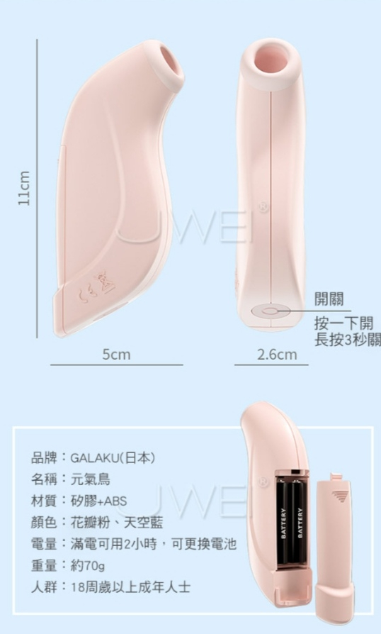 Це чудовий формат секс-іграшки для тих, хто часто подорожує чи хоче спробувати вакуумну стимуляцію вперше. Дуже ніжні та чуттєві потоки м'яко впливають на клітор пробуджуючи його-це тривалий і збуджуючий процес стимуляції, під час якого ви отримаєте масу задоволення. Вакуумний стимулятор виконаний із пластику у вигнутій формі для зручного використання. Вакуумна насадка виготовлена з м'якого медичного силікону. Даний масажер працює від двох батарей ААА (не входять до комплекту), і відтворює чотири рівні інтенсивності на клітор. Спосіб використання: поставте дві батарейки в роз'єм, закрийте кришку, клацніть на кнопку що знаходиться на корпусі іграшки і ви відразу відчуєте дачу вакууму, для посилення інтенсивності клацніть на кнопку. Щоб вимкнути, натисніть кнопку на 3 секунди. Не радимо занурювати та ретельно промивати під проточною водою! Радимо використовувати антибактеріальні спреї для іграшок і безворсові серветки для очищення даного девайсу. Довжина 110 мм Ширина 50 мм Матеріал: пластик Колір: пудра Вібрація: 4 режими Батарейки: 2 ААА не входять до комплекту Упаковка: коробка