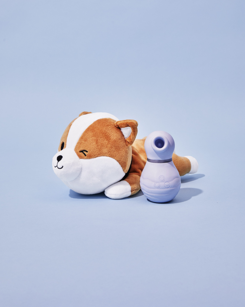 В комплекті до стимулятора іде магнітний USB-кабель та м’яка іграшка (песик шіба-іну), що служить футляром для непомітного зберігання девайсу.