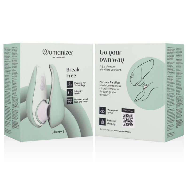 Звільніться з новим Womanizer Liberty 2. Оновлення першого Liberty. Маленький Womanizer з магнітною кришкою, яку легко брати з собою у подорож чи сумку. Womanizer Liberty 2 – це вібратор з повітряним тиском. Надягнувши ковпачок на клітор, ви захистите його. масажується за допомогою запатентованої Womanizers технології Pleasure Air. Це означає, що хвилі повітряного тиску масажують клітор. Ви відчуваєте невеликий вакуум, ефект всмоктування і одночасно одночасно пульсації тиску повітря. Насправді він ніби смокче клітор. Новий Liberty 2 не тільки має неймовірно красиві нові кольори, але й 2 додаткові та покращені режими. Так що ви можете краще знайти правильну позу, яка підходить вам найкраще. Він підходить вам або пограйте з великою кількістю позицій, щоби повільно нарощувати оргазм. Womanizer Liberty 2 водонепроникний, як і інші womanizers, тому ви можете брати його з собою у ванну чи душ. Це також робить Womanizer Liberty 2 простим у чищенні. Ви вмикаєте Liberty 2, натискаючи кнопку +. Liberty 2 має 8 налаштувань і легко управляється за допомогою кнопок + та –. Liberty здається компактним та легким. Ви вимикаєте Womanizer Liberty 2, натискаючи кнопку трохи довше. Liberty 2 має дорожній фіксатор. Його можна увімкнути, натиснувши кнопки + і – одночасно протягом двох або трьох секунд. Це означає, що Liberty 2 не можна увімкнути просто натисканням кнопки +. Використовуйте самі кнопки, щоб зняти Womanizer Liberty 2 з дорожнього фіксатора. ОСОБЛИВОСТІ: Розміри: 100 x 52 x 102 x 46 мм. Вага: 90 г. З магнітною кришкою. Матеріал: АБС, поліуретан, силікон, не містить фталатів відповідно до директиви ЄС. Заряджається за допомогою USB-кабелю, що додається. Світлодіодне підсвічування для індикації рівня заряду батареї. Зарядка: 60 хвилин. Час використання після заряджання: 120 хвилин. Кольори: світло-зелений, фіолетовий, рожевий та синьо-зелений. У комплекті: Womanizer, кабель для заряджання, посібник користувача. Кліторальний стимулятор – це виріб, призначений для стимуляції кліторальної зони. Незалежно від складності виробу, його форми та розміру, всі кліторальні стимулятори виконують роль своєрідних тренажерів, маніпуляції з якими дозволяють вивчити власні сексуальні реакції, реалізувати найнеймовірніші сексуальні фантазії, використовувати їх у сексуальних іграх із партнером. Виріб оснащений вібратором, керування яким здійснюється за допомогою спеціального виносного пульта керування. Виріб може мати спеціальні пристосування для закріплення його в області клітора (це можуть бути або резиночки, або спеціальні трусики). Незвичайні позитивні відчуття задоволення можна випробувати під час використання вібростимулятора.