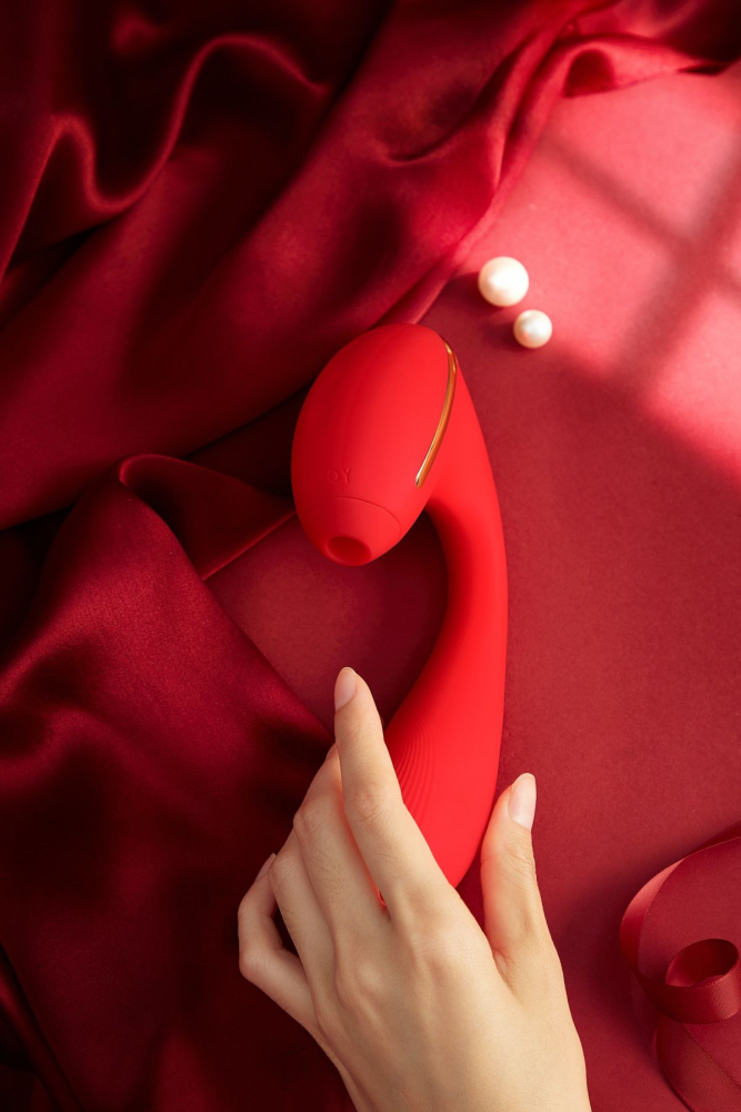 Пропонуємо купити вакуумний вібратор Kisstoy Tina для неймовірних подвійних оргазмів від одночасної стимуляції клітора і точки G! Втім, завдяки гнучкому дизайну ви можете зігнути вібратор і використовувати його тільки для вакуумної стимуляції клітора. 5 режимів високочастотного вакууму і 10 режимів вібрації створюють безліч варіацій для незабутнього досвіду, а функція підігріву до 42°C підсилює відчуття! Потужний і тихий, він подарує вам кращі оргазми.