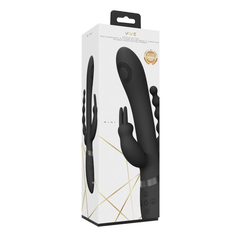 Характеристики Вібратор 3 в 1 для точки G U A і з відростками для анальної стимуляції та клітора чорний Vive Rini