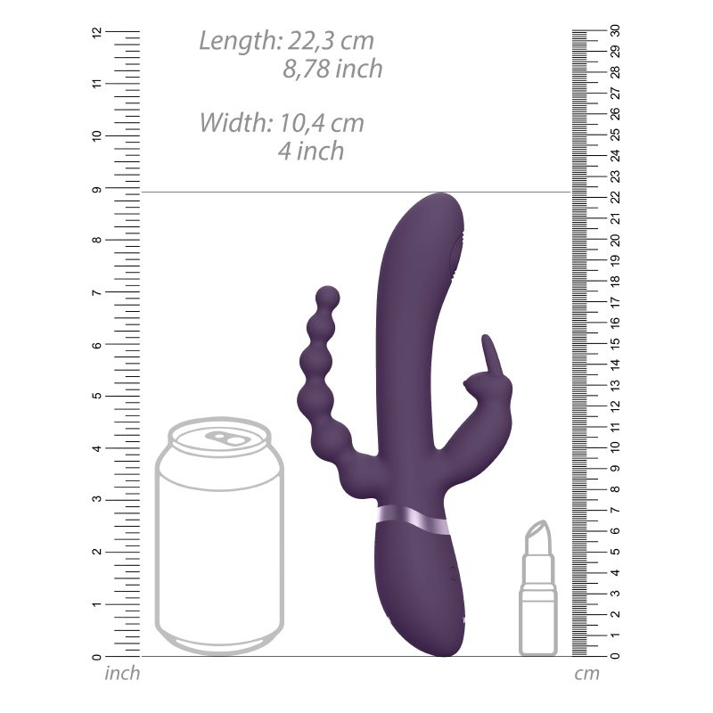 Вібратор 3 в 1 для точки G U A і з відростками для анальної стимуляції та фіолетовий клітора Vive Rini