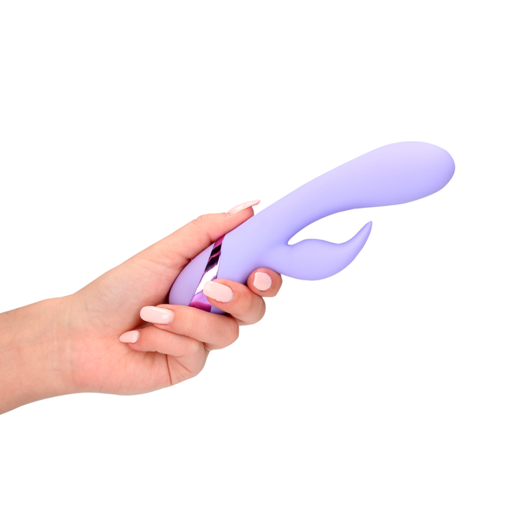 Вібратор для точки G та з відростком для клітора лавандового кольору Loveline