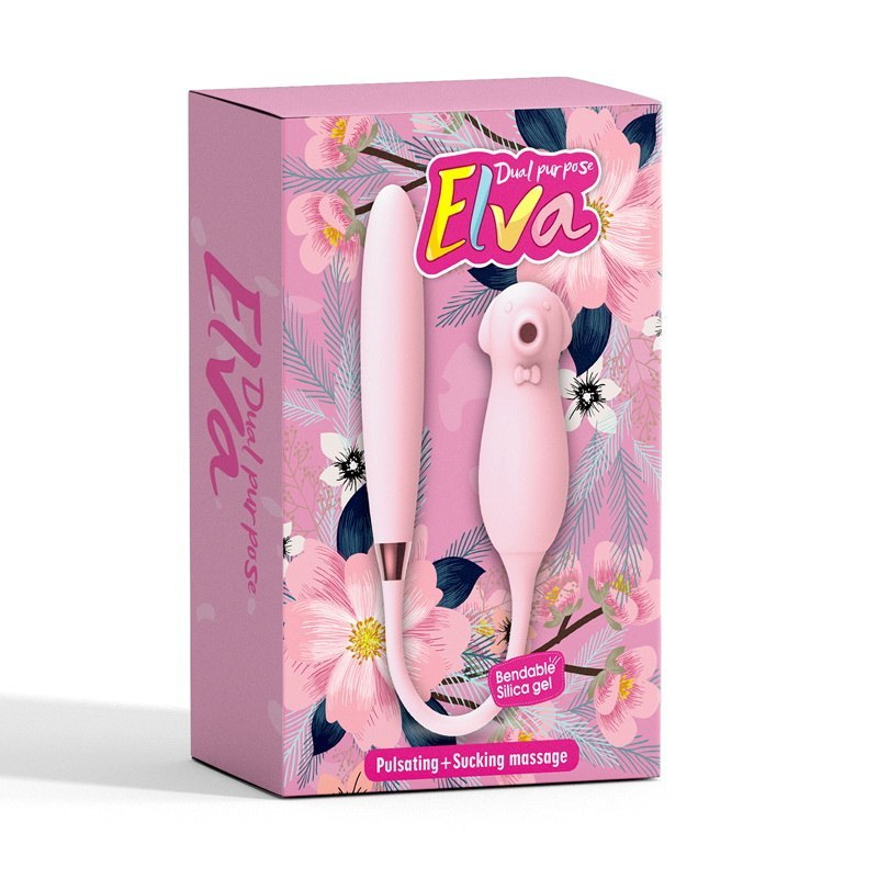 Подвійний вібратор із вакуумною стимуляцією клітора рожевого кольору Boss series Elva Dual Purpose