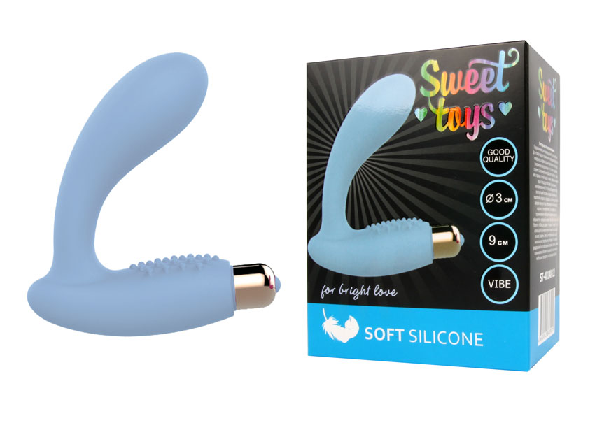Характеристики Вібратор гладкий силіконовий для точки G з ребристим стимулятором клітора SWEET TOYS блакитний L 9 см d 3 см