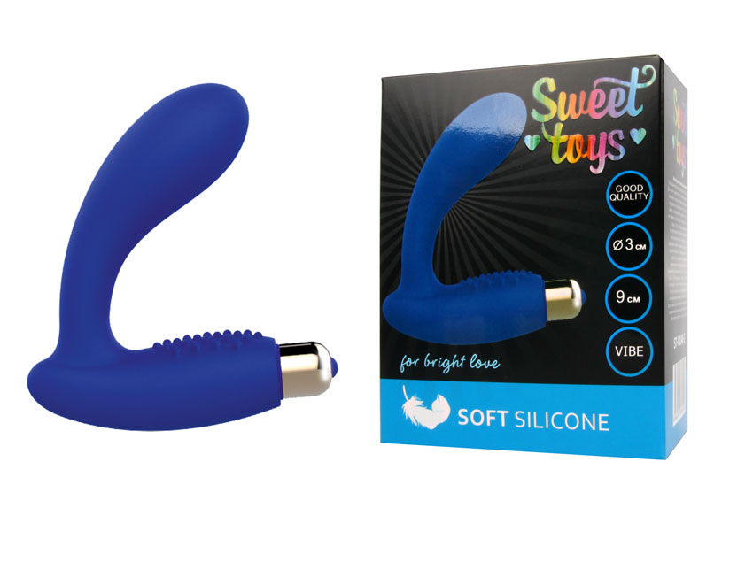 Характеристики Вібратор гладкий силіконовий для точки G з ребристим стимулятором клітора SWEET TOYS Синій L 9 см d 3 см