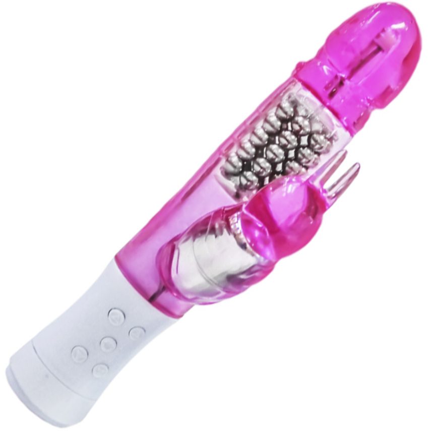 Шукали вірного і невтомного партнера для тілесних втіх? Мрієте про чуттєві ласка і яскраві оргазми? Тоді цей вібратор-кролик стане вашим беззаперечним фаворитом. Він завжди готовий задовольнити сексуальні бажання своєї господині і зробити неймовірне задоволення. Використовуйте девайс у моменти самозадоволення або прихопіть із собою інтимне побачення. Ваш партнер не відмовить собі в задоволення побешкетувати з цим вібратором і вашою «кицькою». Девайс виготовлений з TPE та ABS-пластику. Він має реалістичну форму з плавними лініями і ніжною поверхнею, Прозорий корпус став справжньою родзинкою моделі і відкриває погляду кілька рядів бусинок, що обертаються. Модель має спокусливий відросток у вигляді тулуба пустотливого кролика, який занурить вас у вир пристрастей і обдарує нищівними екстазами. Панель управління розташована на ергономічній ручці, тому ви можете легко контролювати інтенсивність стимуляції, не відволікаючись від основного процесу. В арсеналі девайса кілька режимів вібрації. Від ніжного та чуттєвого, до пристрасного та дуже інтенсивного.