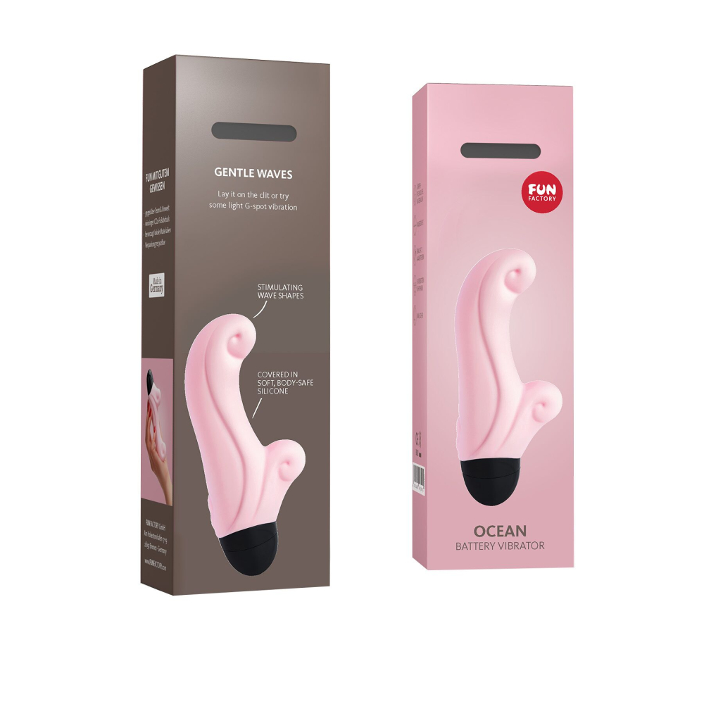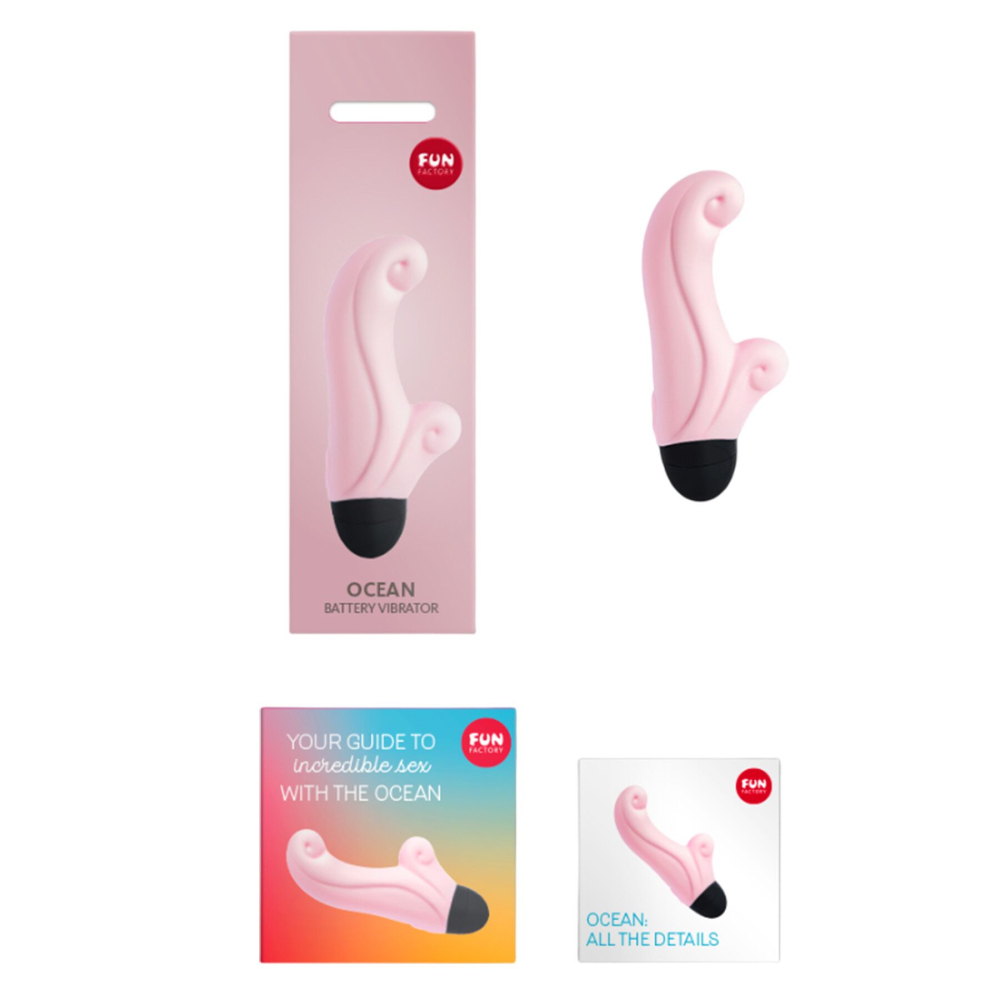 Робоча частина вібратора-кроля Fun Factory OCEAN зроблена з бархатистого на дотик медичного силікону. Дизайн іграшки зачаровує: рельєф на корпусі виконаний у вигляді морських хвиль, а кінчики двох відростків різної довжини закруглені, немов пінні «баранчики». Ці елементи не тільки естетично виглядають, але й забезпечують яскраву стимуляцію ерогенних зон: ви можете вибирати із 6 швидкостей та 6 режимів вібрації.