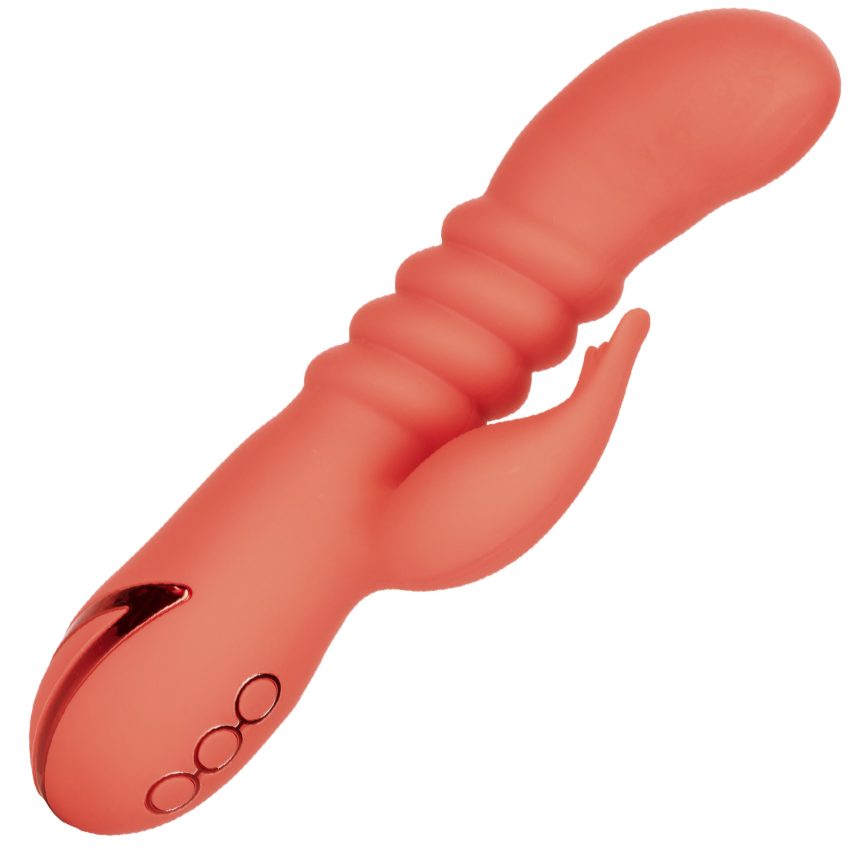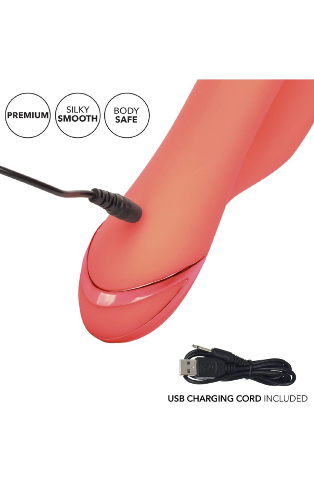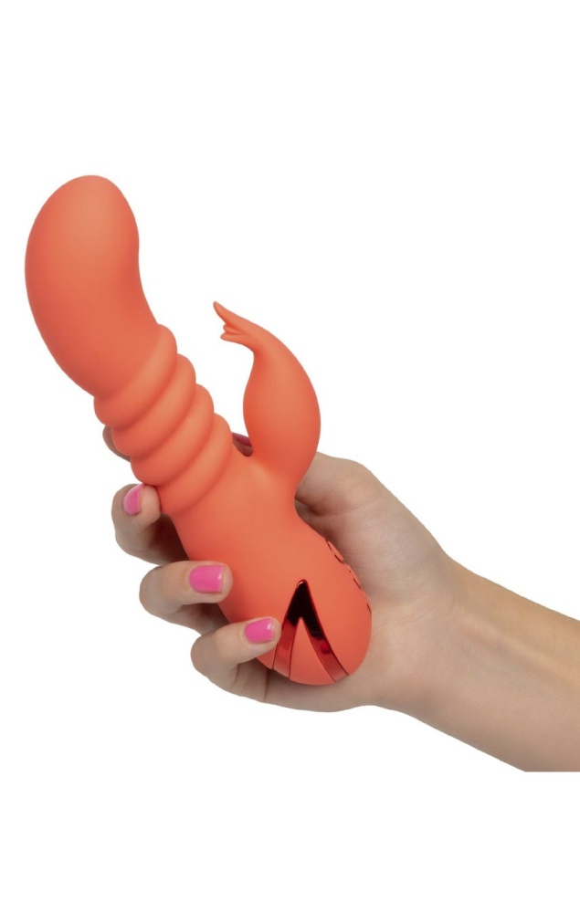 Поціновувачам вібраторів з рельєфною поверхнею компанія CalExotics пропонує спробувати цю оригінальну іграшку для насолоди. Її стовбур, що потовщується до кінця, з плавними складками порадує не тільки бархатистим силіконовим покриттям, але і 10 режимами вібрації, а тонкий кінчик відростка для кліторальної стимуляції зробить відчуття в кілька разів солодше. Вібратор можна використовувати під час мастурбації чи сексу з партнером, вводити у спальні чи у ванній. Його матеріал не порушує чутливу мікрофлору статевих органів і сумісний з інтимними мастилами на водній основі, а повного заряду акумулятора може вистачити на дві з половиною години роботи. За цей час ви легко зможете довести себе чи партнера до неодноразового оргазму.