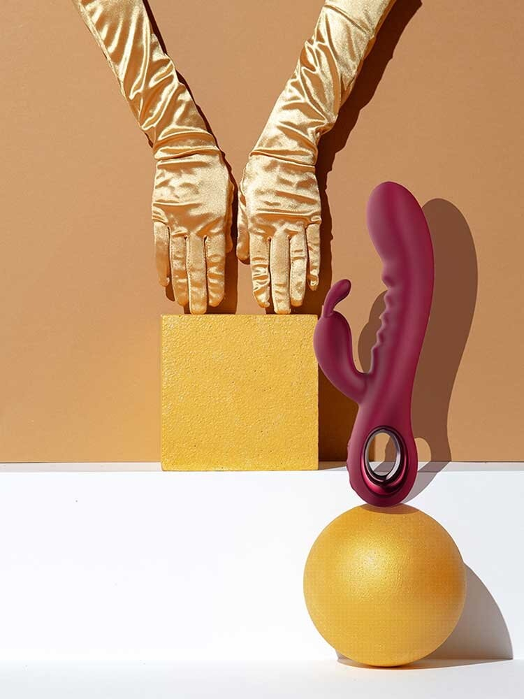 Цей Glam Rabbit Vibe виготовлений із гладкого та м'якого силікону, що забезпечує розкішне відчуття на Вашій шкірі. Елегантна кільцева ручка, виготовлена з блискучого матеріалу ABS, додає нотку гламуру, забезпечуючи при цьому легку та зручну маневреність.