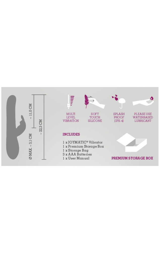 Пориньте у світ незабутніх відчуттів разом з вібратором The intelligent Rabbit. Ця мила іграшка здатна простимулювати Ваші найерогенніші зони, і подарувати всю насолоду оргазму. Зручна рукоятка дозволяє регулювати інтенсивність вібрацій легким натисканням руки. Ви можете збільшувати її частоту та силу, тим самим збуджуючи пристрасть ще більше. Внесіть трохи пікантності у Вашу інтимну близькість із партнером, та випробувайте нові емоції. Не треба відмовляти собі у приємностях, адже це так просто. Це витончена інтимна дрібниця спеціально створена для жіночого задоволення. Адже вібратор дарує не лише вагінальне задоволення, а й ніжно стимулює клітор. А гостроти відчуттям додадуть вібрації.