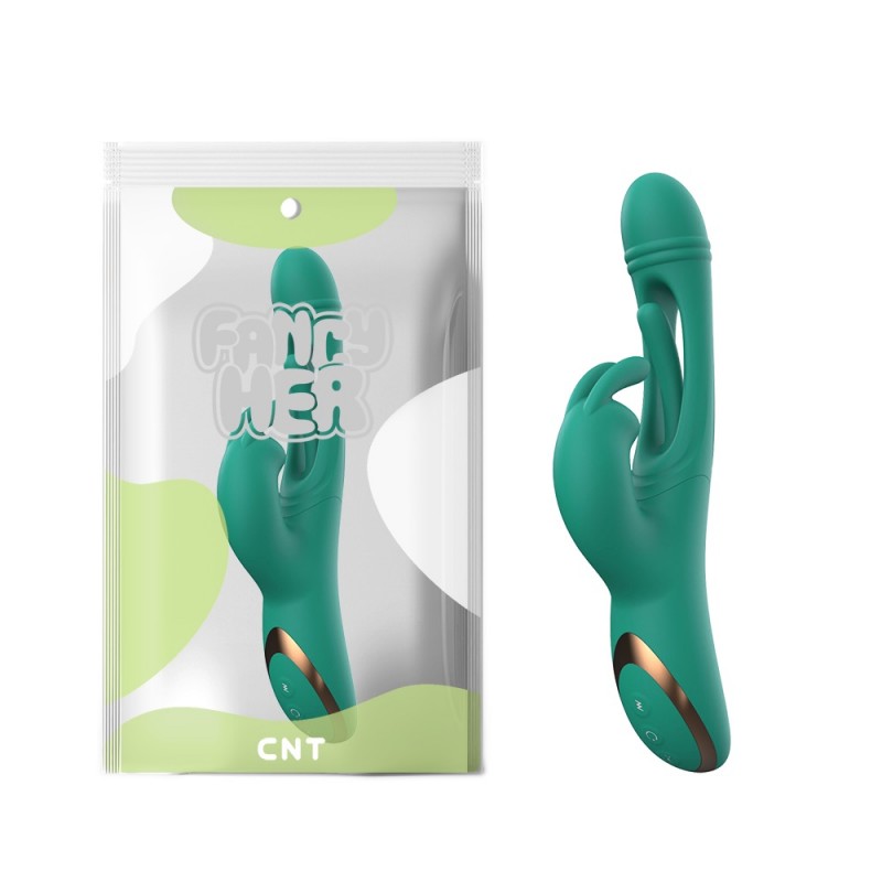 Вібратор кролик із відростком для кліторальної стимуляції Greedy Triple Stimulating Massager зелений