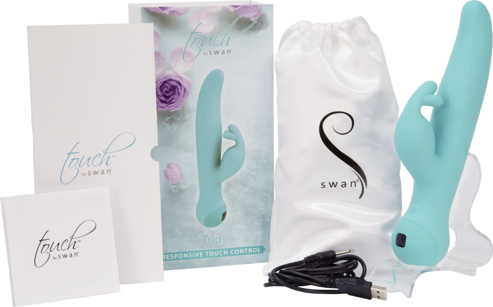 Вібратор для точки G та відростком для клітора з сенсорним керуванням та ротацією бірюзового кольору Swan Trio Teal