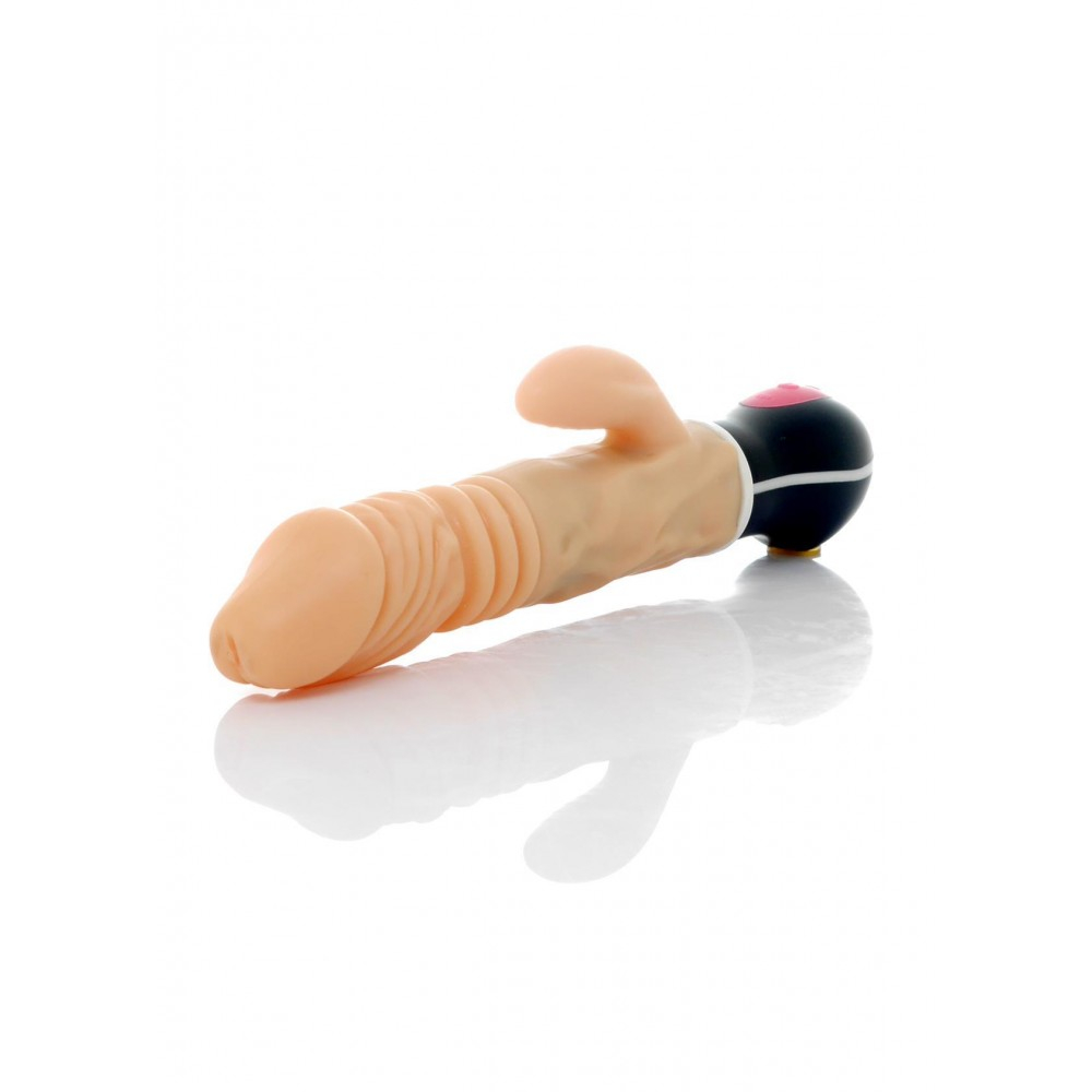 Вібратор-кролик реалістичний з пульсацією, фрикціями та ротацією Uranus, кібершкіра, бежевий, 27 х 4.5 см