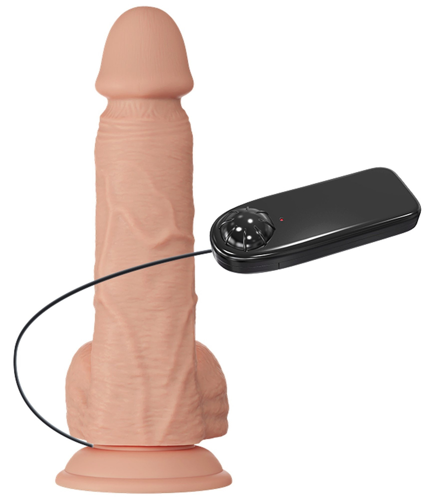 Вібратор на присосці з безступінчастим регулюванням вібрації, виконаний досить реалістично з приємного на дотик матеріалу.