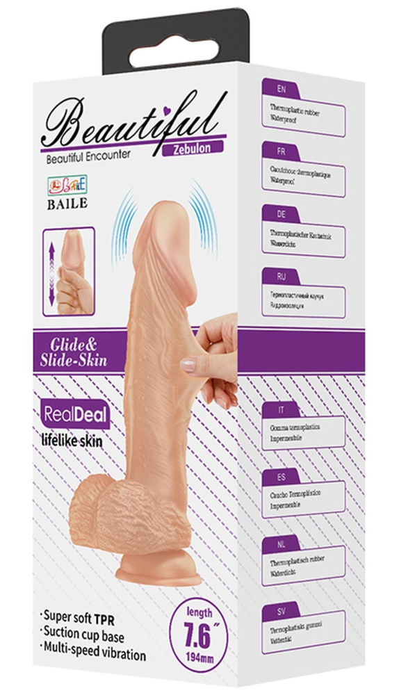 Характеристики Вібратор реалістичний на присосці тілесного кольору з пультом ДК Lybaile Baile Beautiful Zebulon Vibration довжина 250 мм