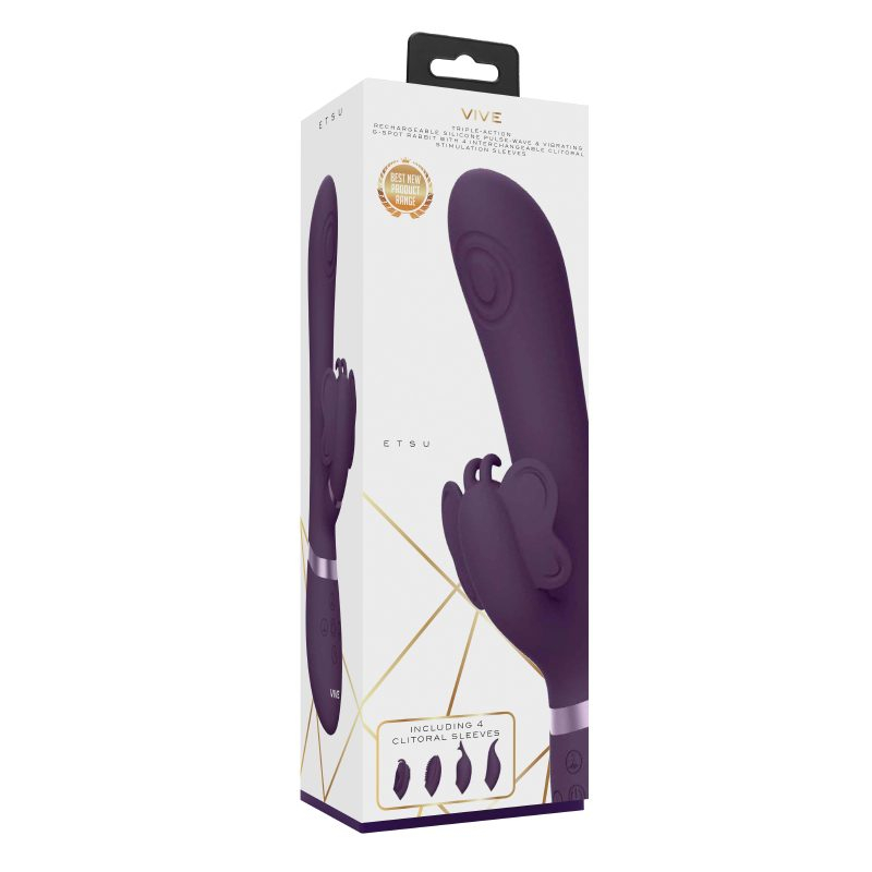 Вібратор Пульсатор для точки G A K та з відростком для клітора фіолетовий Vive Etsu + 4 насадки