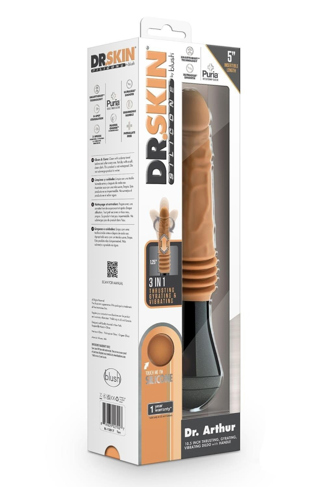 Вібратор Blush Dr. Arthur - це ваш новий інтимний рецепт для безмежного задоволення. Завдяки інноваційній технології SmartThrust він імітує природні фрикційні рухи, забезпечуючи глибоке проникнення без утисків навіть під час найактивнішої гри.