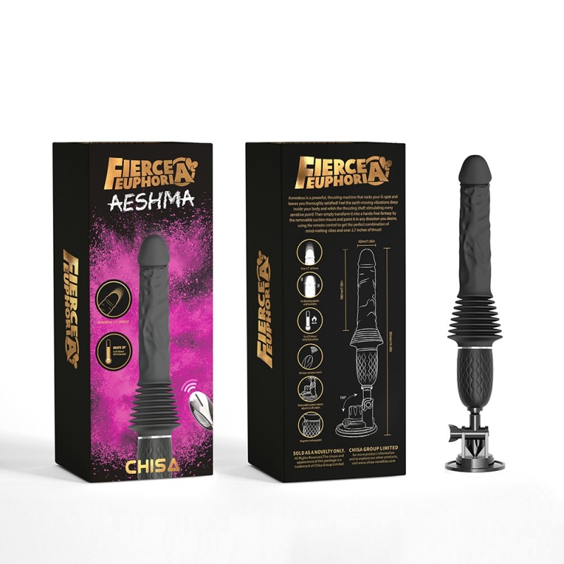 Характеристики Вібратор реалістичний на присосці чорного кольору з бездротовим пультом дистанційного керування Chisa Fierce Euphoria Aeshma