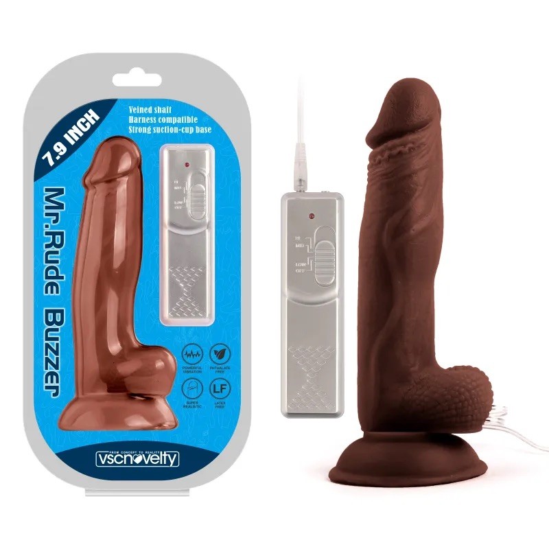 Вібратор реалістичний на присосці Mr. Rude Buzzer Brown 7.9 коричневого кольору