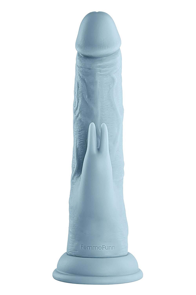 Вібратор реалістичний на присосці з відростком для клітора з пультом управління блакитного кольору Femme Funn Vortex Turbo Rabbit