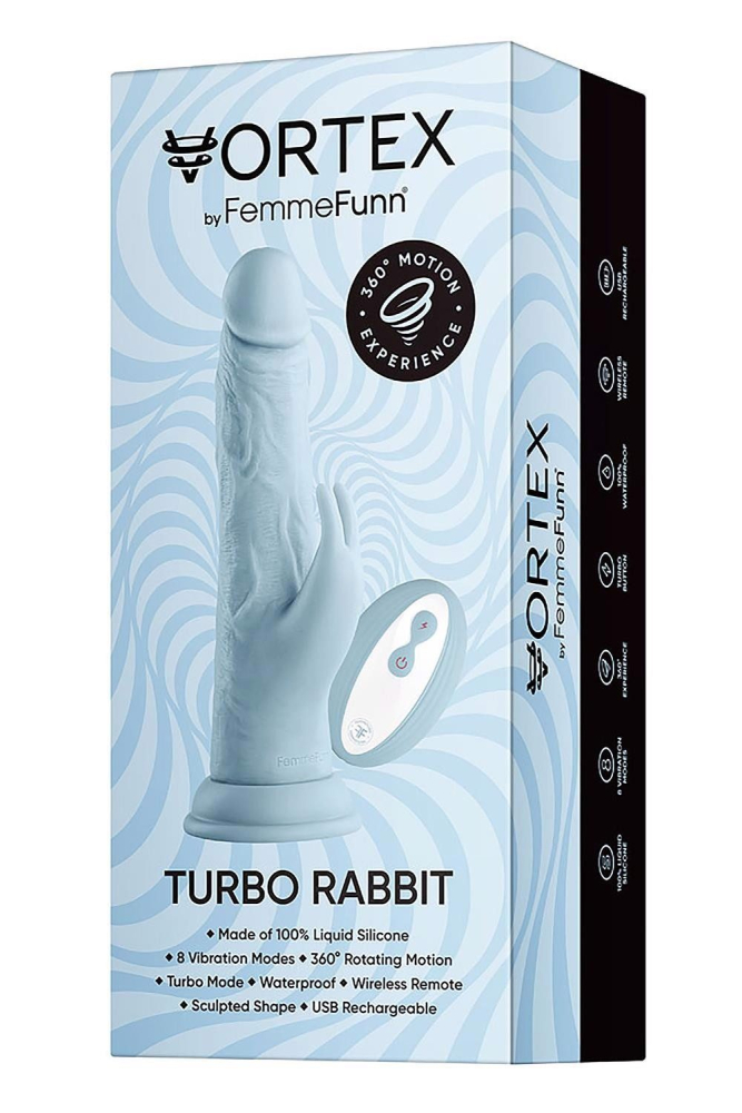 Вібратор-кролик на присосці FemmeFunn Vortex Turbo Rabbit з пультом керування, блакитний