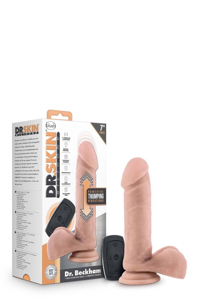 Вібратор реалістичний із мошонкою на присосці Blush Dr. Skin Dr Beckham, з пультом, бежевий