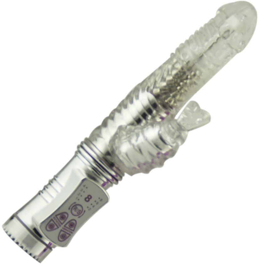 Вібратор реалістичний з відростком для клітора та ротацією сріблястого кольору Ningbo aiLe Jack