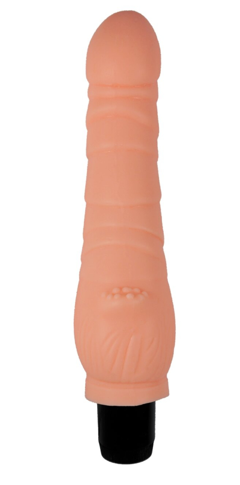 Вібратор тілесного кольору. Реалістичний з яскраво вираженою головкою. Надзвичайно приємний, рельєфний, виконаний з "кібершкіри", передає ефект м'якої реалістичної текстури шкіри, не має швів.