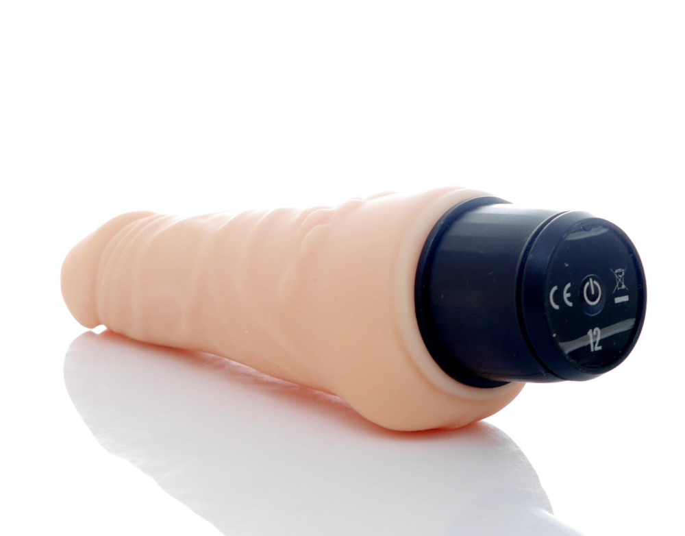 Вібратор тілесного кольору. Реалістичний з яскраво вираженою головкою. Надзвичайно приємний, рельєфний, виконаний з "кібершкіри", передає ефект м'якої реалістичної текстури шкіри, не має швів.