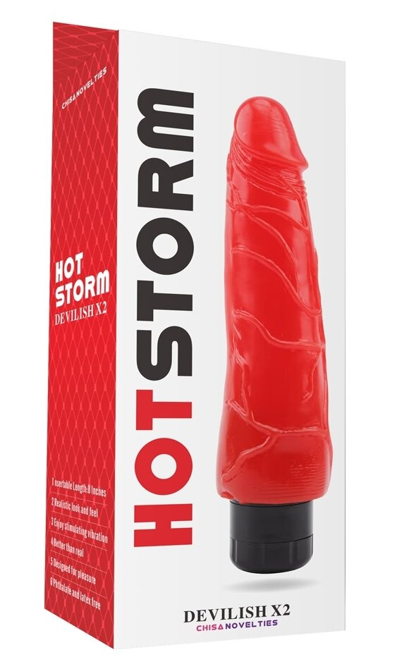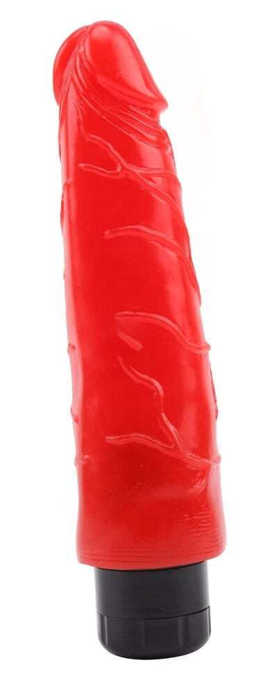 Вібромасажер червоного кольору, виготовлений з м'якого гелевого матеріалу.
