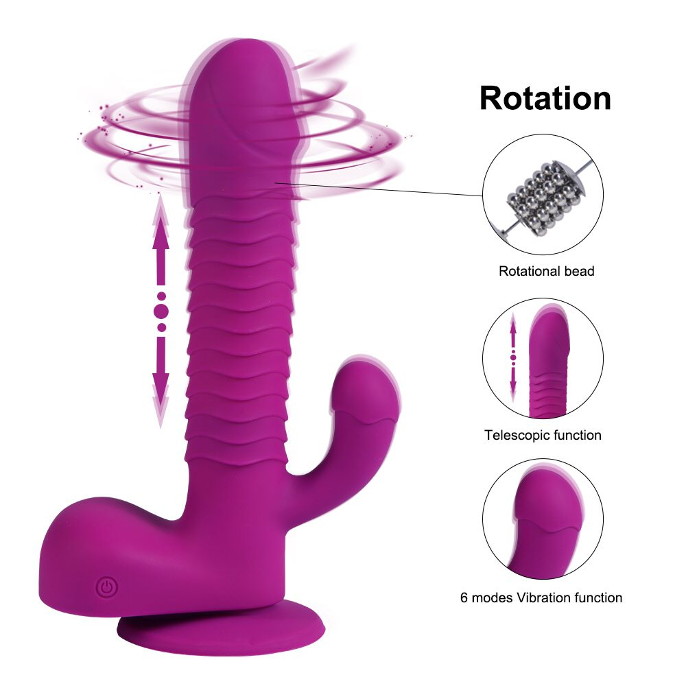 Портативний штовхаючий обертовий акумуляторний фалоімітатор має 6 режимів вібрації,6 режимів швидкості клітера, 6 режимів ротації, рух вгору-низ.
