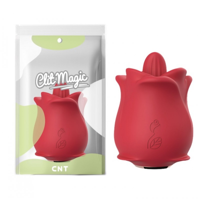 Вібратор Троянда з язичком для стимуляції клітора червоного кольору Cnt Rose Romance Blow Stripe