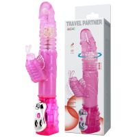 Вібратор з відростком для клітора з функцією ротації та зворотно поступальним рухом рожевого кольору LYBAILE baile travel partner